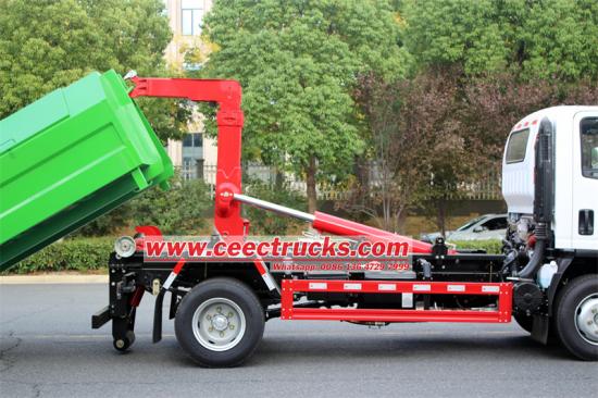 6 tons Hook lift garbage truck本車は高性能なIsuzu NPRゴミフックリフト車で、現代の都市清掃車の精密なエンジニアリング設計を際立たせています。定格出力190馬力のISUZU 4HK1-TCG61 4気筒ディーゼルエンジンを搭載し、パワフルなだけでなく環境に優しいのも特長です。ホイールベース3360mm、総重量10550kg、積載量6トン、最高速度105km/hで、街路や路地をスムーズに移動できます。油圧式リフティングシステムは最大6トンの荷重を持ち上げ、荷降ろし時間は40~50秒、最大荷降ろし角度は45°、油圧システム圧力は16MPaで、都市清掃会社の基本的なニーズを満たすことができます。