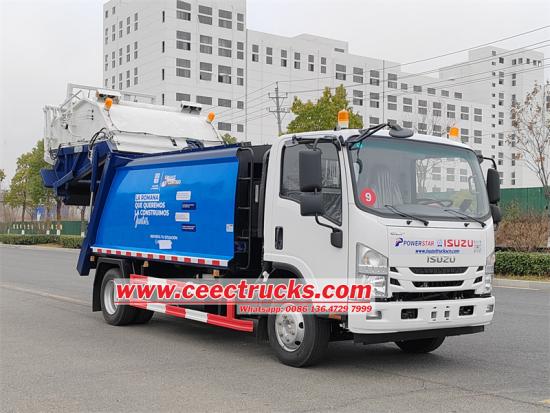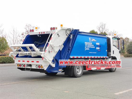 いすゞ700P 8立方フィートのゴミ圧縮車は、いすゞ700Pシャーシをベースに改造され、ホイールベースは3815mm、いすゞ4HK1-TCG61エンジン、139Kw、ユーロ6排出ガス、排気量5193mlです。車体圧縮容積は8立方フィートで、炭素鋼製です。ゴミの積み下ろし作業には、運転席の電気制御ボックス、運転席側の手動油圧操作レバー、テールゲート左側の電気制御ボックス、テールゲート右側の手動操作レバーの4つの操作部があり、作業効率が向上しています。