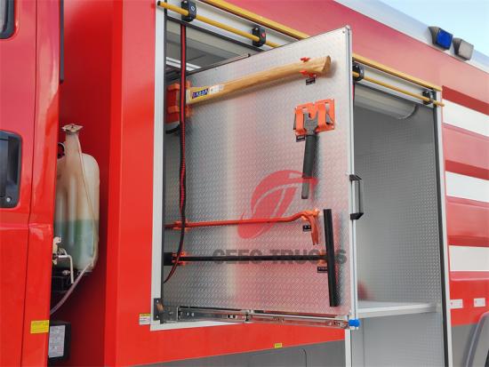 シャシー部は6×4構成を採用し、優れた安定性とトラクション性能を備えています。これは、様々な地形を走破し、緊急現場に到達するために不可欠です。堅牢なシャシーと強力なトランスミッションシステムを組み合わせることで、過酷な状況でもスムーズに走行し、消防隊員が火災現場に迅速に到着し、消火活動を開始できるようにします。また、前進12段、後進2段のFAST12速ギアボックスと組み合わせることで、スムーズな変速感と優れた伝達効率を実現しています。さらに、車両にはABS(アンチロックブレーキシステム)も搭載されており、運転安全性をさらに向上させています。