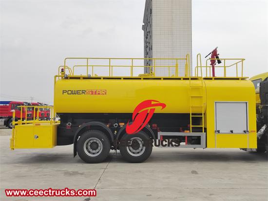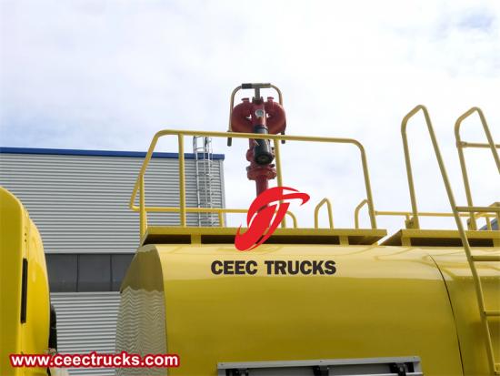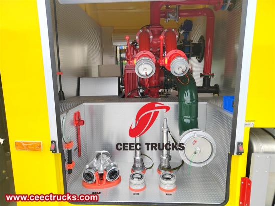 炭素鋼製の水タンク、マンホール、水ポンプ、前面/側面/後面スプレーノズル、後部作業プラットフォーム、放水砲、消火バルブ、水バルブ、フィルターガーゼ、水ホース、登山用はしご。 |