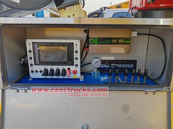 ● 3つの制御システム:ターンテーブルキャブ内の操作レバー、地上制御ボックス(7インチLCD画面にアームの長さ、仰角、高さなどのパラメータがリアルタイムで表示される)、およびワイヤレスリモートコントロール操作をサポートし、人間と機械の相互作用の効率を向上させます。