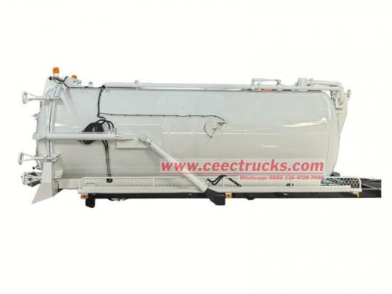 MOROポンプ付き浄化槽タンク車本体(10,000リットル汚水清掃車上部本体、汚泥真空ポンプタンク車上部構造、溝サッカー真空車キット、真空汚水吸引車上部本体、汚水処理タンク車上部構造とも呼ばれます) シャーシに取り付けて、汚水、ヘドロ、浄化槽、原油などの液体、そして小石やレンガなどの固形物を洗浄・回収するために使用されます。下水道、汚水溜め、汚水槽、溝などの清掃に適しています。環境・衛生分野で広く使用されています。