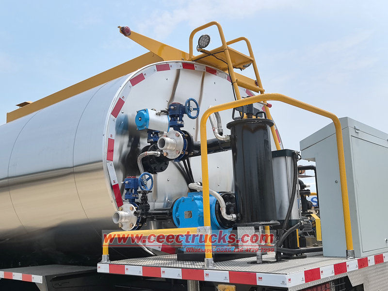 インテリジェントアスファルトスプレッダートラックは、車両シャーシ、アスファルトタンク、アスファルトポンプおよび噴霧システム、サーマルオイル加熱システム、油圧システム、燃焼システム、制御システム、空気圧システム、および操作プラットフォームで構成されています。 |