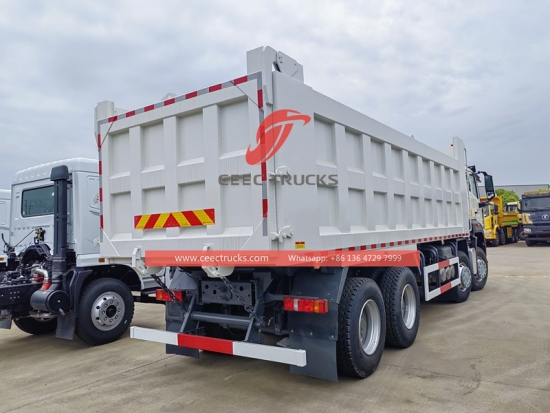 HOWO 40トンダンプトラック、HOWO 8x4シャーシ、FAST 12段マニュアルギアボックス、HOWO 420馬力ディーゼルエンジン、高強度鋼製ダンプボディ、HYVAまたは国産油圧リフター(オプション)。塗装とロゴはご要望に応じて変更いたします。