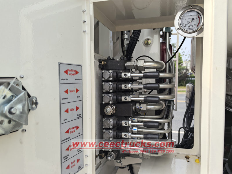 HOWOゴミ圧縮車の制御システムは、電気制御、空圧制御、油圧制御の利点を総合的に活用しています。電気制御システムは空圧制御システムを制御し、空圧制御システムは油圧バルブ群を制御します。複数のチャネルを最大限に活用することで、油圧システムと電気システム間のインターフェース問題を効果的に解決します。逆止弁はソレノイド逆止弁よりも油汚染に対する耐性が高く、バルブの詰まり現象を解消し、使用の信頼性と効率を向上させます。