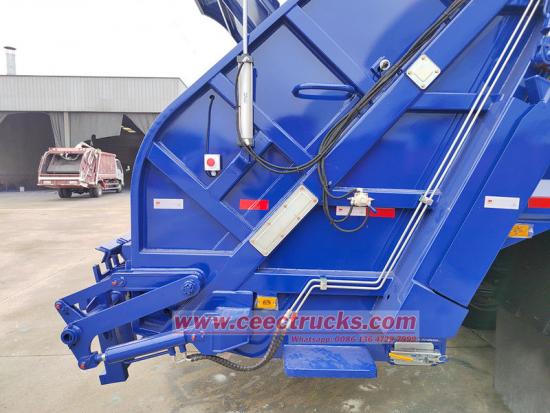 この車両は完全油圧駆動システムを搭載しており、オペレーターはコントロールパネルまたは無線リモコンを使用して、ゴミの積み込み、圧縮、積み下ろしの全工程を完了できるため、労働強度が軽減されます。さらに、コンテナの充填量をリアルタイムで監視するセンサーを搭載し、自動的に圧縮を停止し、警告を発して過積載を防止します。安全性を考慮し、後部ドアには油圧ロック機構が備わっており、輸送中の液漏れを防止します。さらに、緊急ブレーキシステムと横転防止装置が走行安全性を確保します。