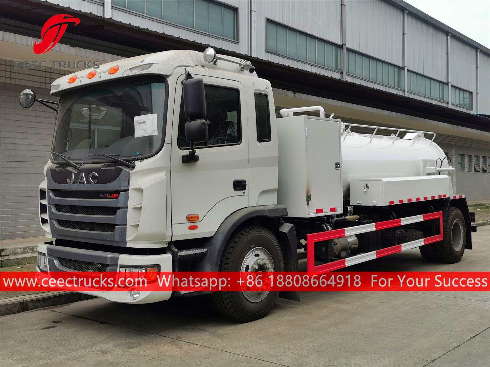 JAC 8cbm 真空タンカー トラック、左ハンドル モデル 4x2 シャーシ、6 シフト マニュアル ギアボックス、YUCHAI 160HP ディーゼル エンジン、塗装およびロゴは要件に応じて異なります。